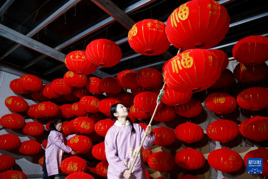 新年临近,河北省邢台市南和区的灯笼作坊加紧制做红灯笼,供应节日市场。