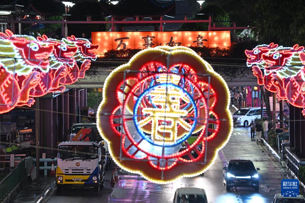 这是1月19日在新加坡牛车水拍摄的农历新年灯饰。新华社发(邓智炜 摄)