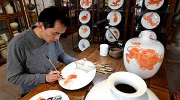 在云冈研究院可移动文物修复室,杭侃(左)和同事交流瓷器修复方案(2月25日摄)。