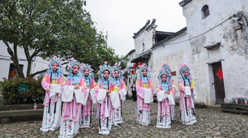 4月11日,“新叶昆曲”表演团队在新叶古村的老街上进行表演。