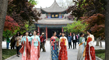 5月20日,旅客在工作人员的帮助下体验茶艺。