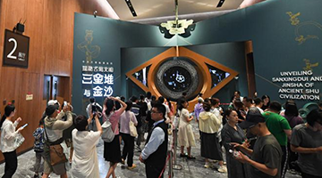 7月2日,上海师范大学音乐学院学生表演歌舞诗剧《绣红旗》。