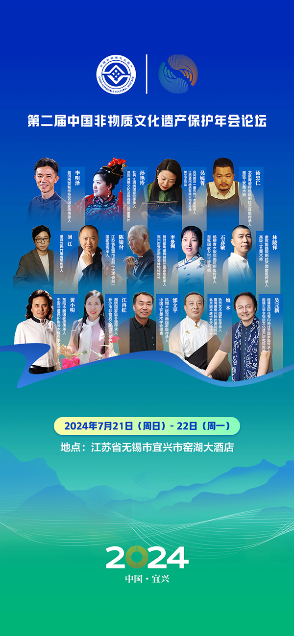 7月21-22日,第二届中国非物质文化遗产保护年会论坛即将在江苏省宜兴市窑湖小镇召开,论坛以“新时代非遗新使命”为主题,以主论坛、主题论坛、圆桌沙龙等多种形式展开。