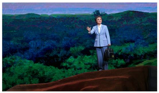 舞美设计别具一格,巧妙运用多媒体技术,将影视剧闪回手法自然地融入其中。随着剧情的缓缓推进,自然环境的变化在舞台上生动地展现出来,宛如一幅绚丽多彩的画卷徐徐展开,为观众带来极致的沉浸式体验。