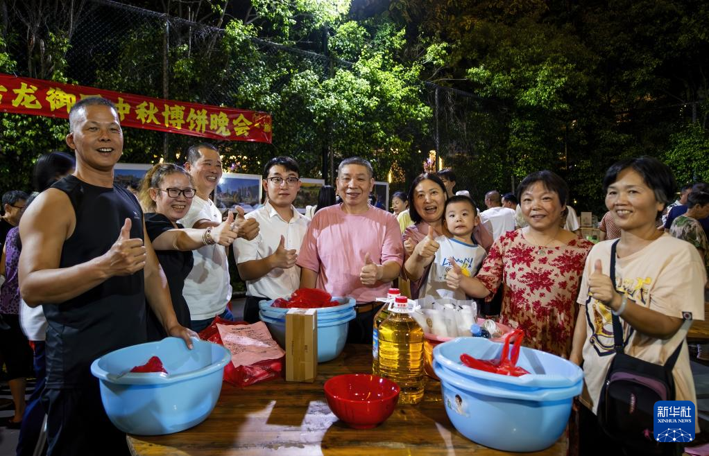 9月14日,在福建厦门一小区内,居民一起参加博饼比赛。