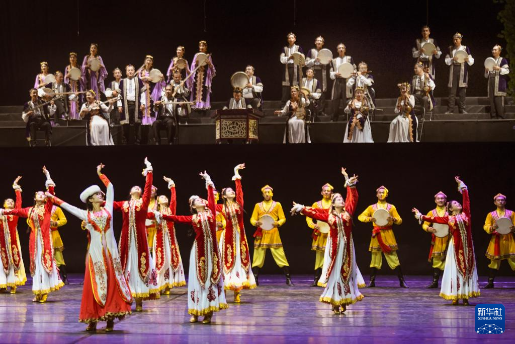 9月21日晚,新疆喀什职业技术学院师生表演十二木卡姆《我的爱献给祖国母亲》。