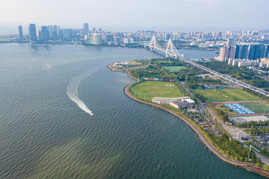 在海南省海口市拍摄的海口湾景色(无人机照片)。新华社记者 蒲晓旭 摄