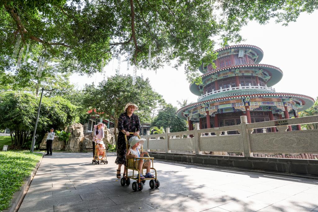 8月13日,市民在位于海口市的海瑞文化公园里散步。新华社记者 张丽芸 摄