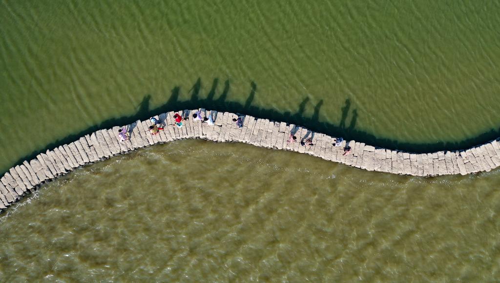 海口市琼山区龙塘镇国仓村美味河上,一座500多年前为治水而建的古老石桥,长约200米,如伏卧灵蛇,水涨则隐,水退而现。如今这里是市民游玩休憩的网红打卡地。