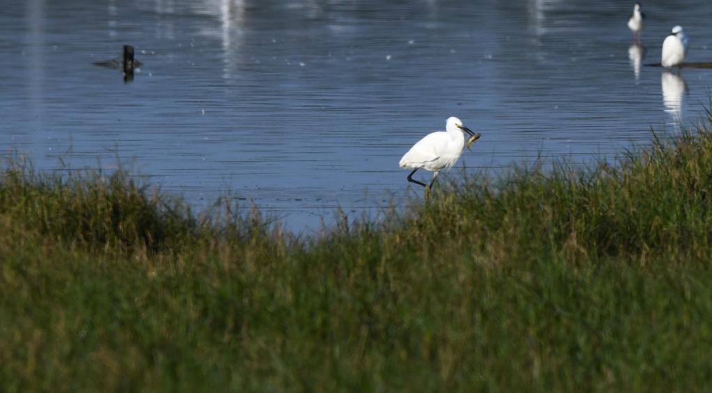 鹭鸟在经过治理后的湿地觅食。新华社记者 杨冠宇 摄
