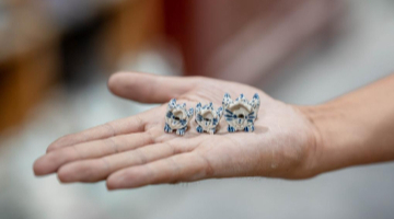 改造升级后松木场农贸市场装饰墙上的鱼篓等物件(9月23日摄)。