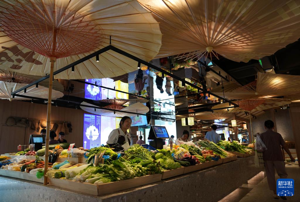 日前,位于杭州市西湖区北山街道的松木场农贸市场经过改造升级后启动试营业。改造后的菜市场将绘画、书法、文学等元素融入内外部空间,为菜市场增添艺术氛围,提升了整体形象。
