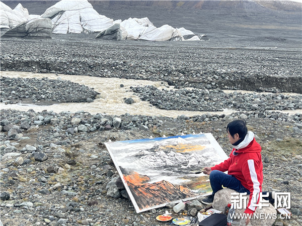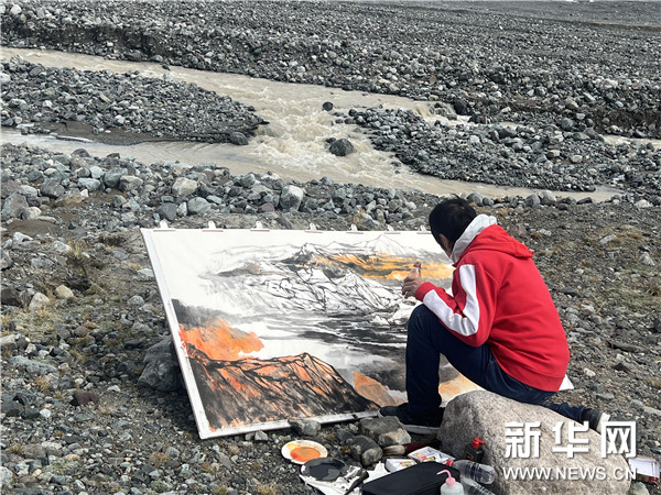 西藏美术家协会名誉主席唐天源作为11位国画名家之一,由藏北赴青海,探源长江第一滴融水的力量,创作绘制了表现壮美长江源头的国画作品。该作品以姜古迪如冰川及其高山草甸、水系为主要表现内容。为创作该画作,画家唐天源于2024年9月11日赴长江源头区域的西藏安多、青海格尔木等地区开展了为期7天的采风创作,在此过程中,克服了高寒缺氧、冻土融化、道路不便、车辆陷落等困难。此次长江写生活动也是西藏画家参加的全国大规模美术创作活动之一。
