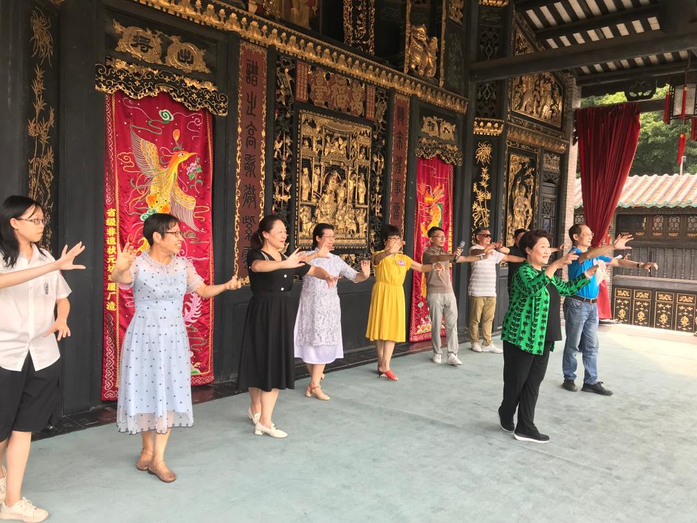 游客在佛山粤剧故乡游径中的万福戏台体验粤剧。(广东省文旅厅供图)