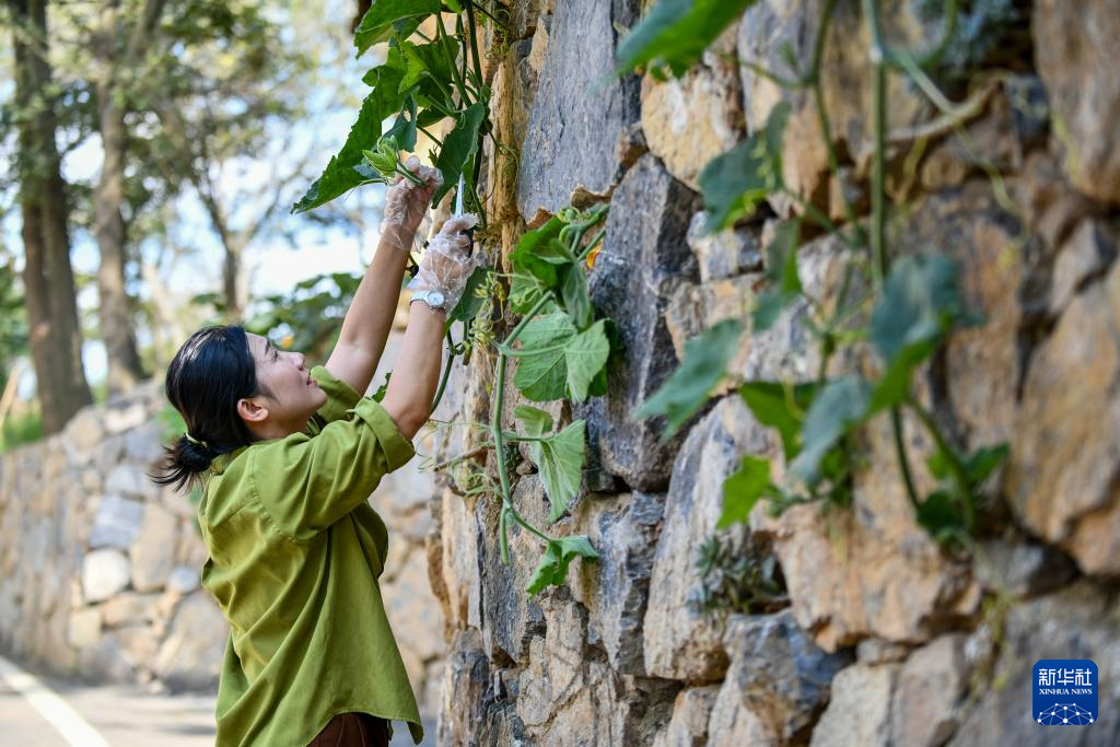 10月30日,土瓜冲村一名民宿经营者在村里采摘南瓜尖。