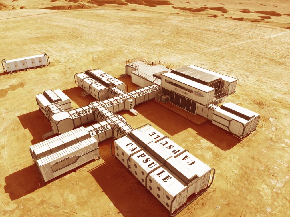 “火星营地是一个集科学探索、旅游观光、户外探险于一体的综合性营地。火星营地为游客提供真实的模拟登陆火星体验,设计多个‘火星任务’,包括戈壁徒步、寻找水源、搜寻物资等。”火星营地负责人康宝介绍,整个营地由睡眠舱、指挥舱、观景台等部分组成,可分别容纳50-200人,体验游玩时长一般在2-10天。每年夏季,火星营地就会进入研学旺季,针对青少年群体,营地还开设了与火星相关的生物、化学、地理、天文等科普课程,各地青少年来到这里体验“火星生活”,学习相关知识。