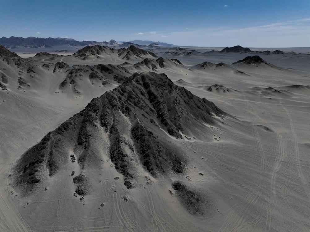 在海西蒙古族藏族自治州茫崖市冷湖镇境内拍摄的黑独山一角(无人机照片)。新华社记者 张龙 摄