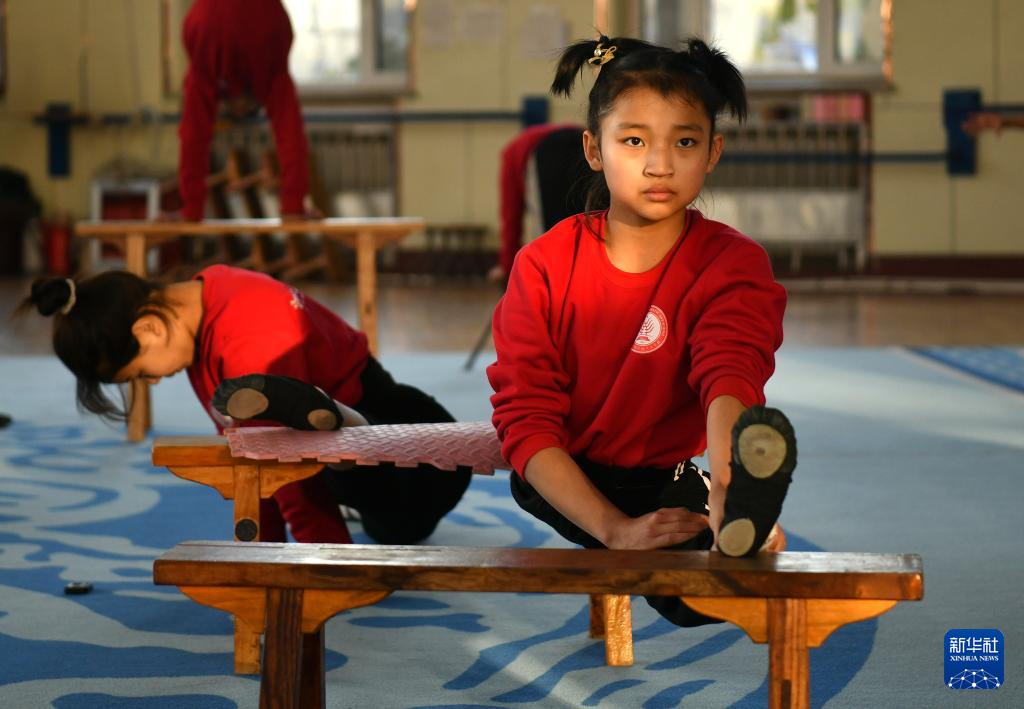 12月17日,河北吴桥杂技艺术学校的学员在练功。