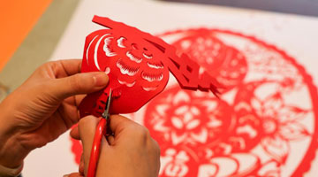 12月26日,在昆明市博物馆,非遗剪纸传承人段云丽表演生肖剪纸。