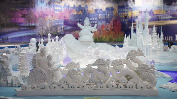 在冰雕雪塑的世界里,一座座以中式建筑为蓝本的冰建筑巍峨耸立,哈尔滨不断向世界展示多姿多彩的国风元素。匠人们凭借精湛技艺,以冰雪为笔,缓缓铺陈开一幅幅中国历史文化的壮丽画卷。