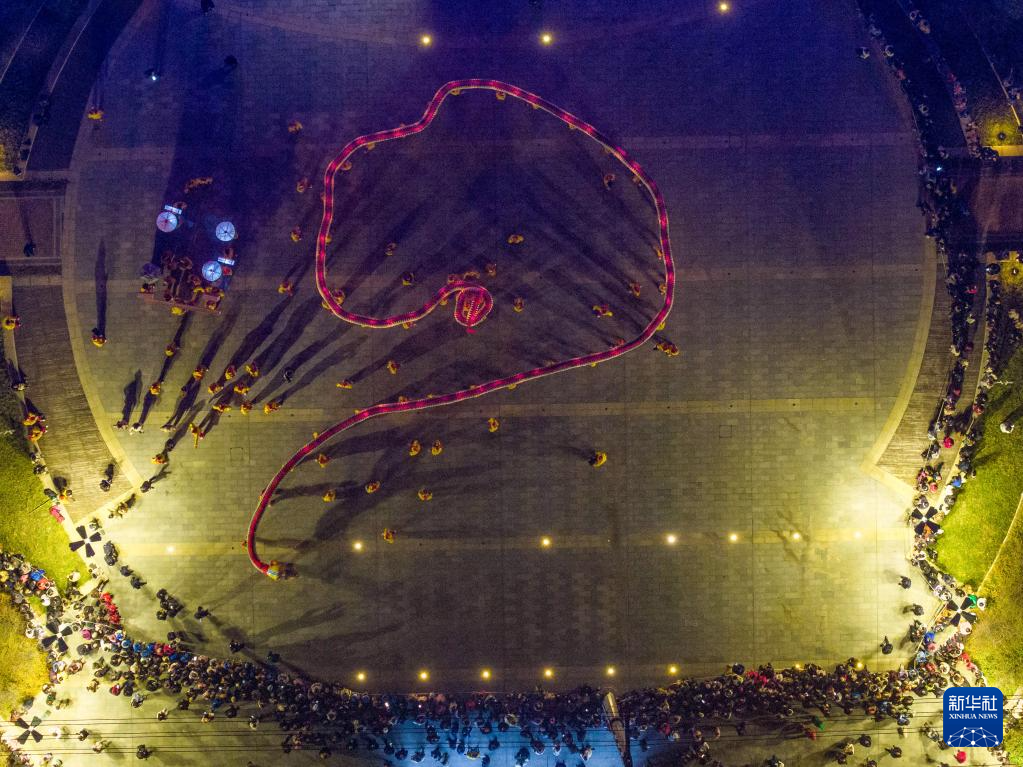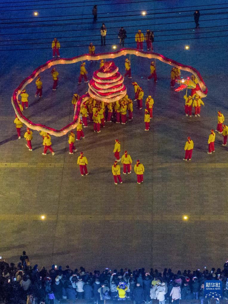 1月22日拍摄的“肥东洋蛇灯”表演(无人机照片)。