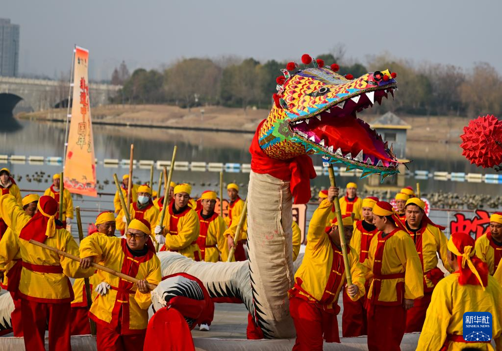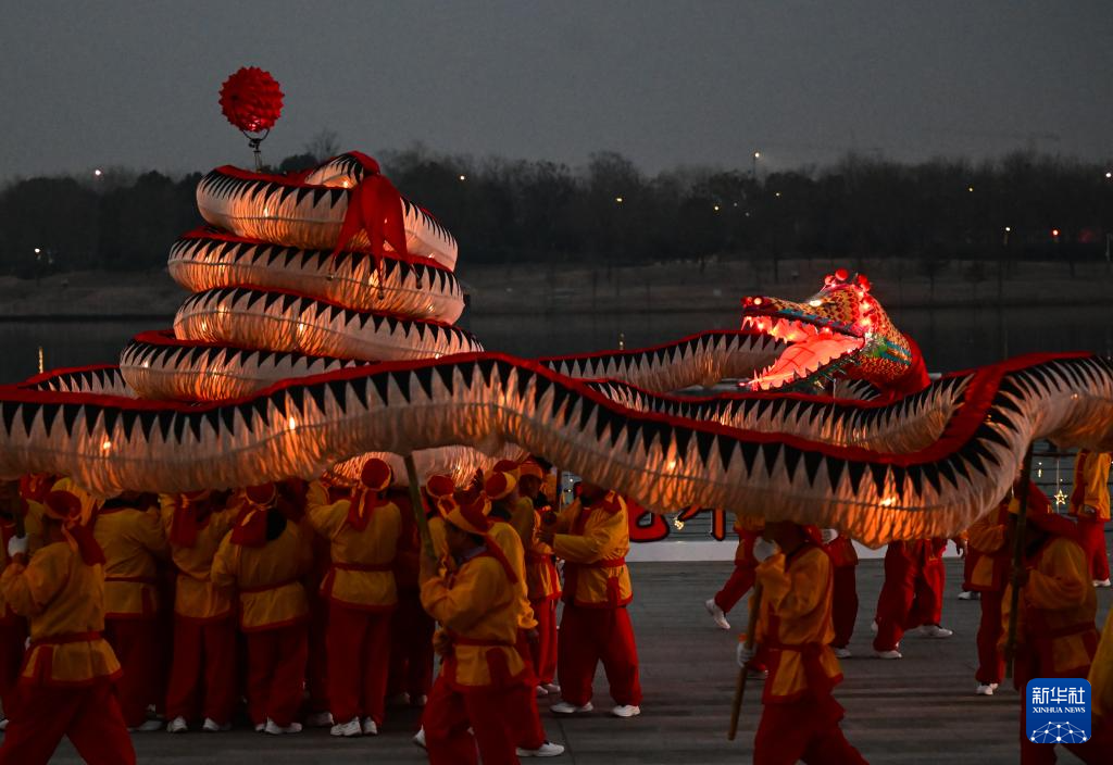 春节临近,安徽省合肥市肥东县国家级非遗项目“肥东洋蛇灯”出灯。长度达128米的“肥东洋蛇灯”演绎“长蛇出海”“走径折”“四蟒翻身”“盘宝塔”等舞蹈动作,寓意腾跃奋进、国泰民安。 “肥东洋蛇灯”诞生于肥东县包公镇大邵村,距今有六百多年历史。