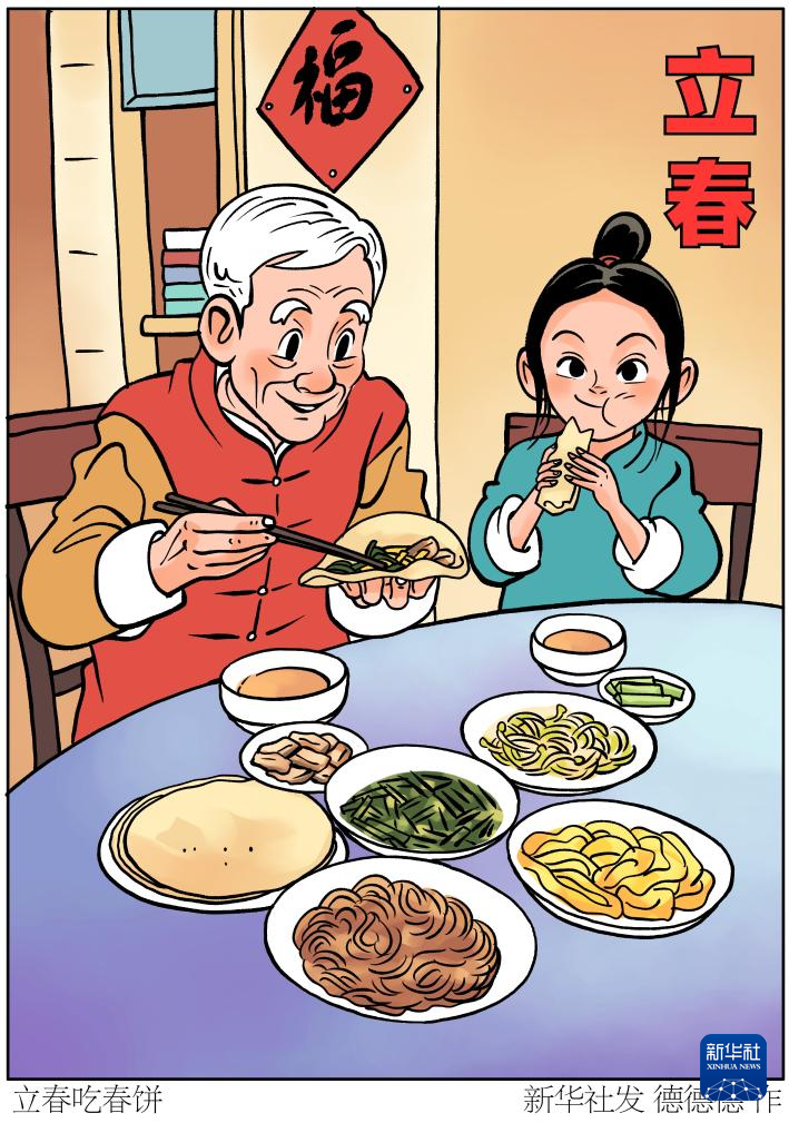 王来华说,春饼多见于北方,而南方则流行春卷。就着春饼或春卷,各色新鲜食材皆可“一卷”而食,一口下去,齿颊留香,满嘴是“春的味道”,爽哉美哉。有诗云:“调羹汤饼佐春色,春到人间一卷之。”