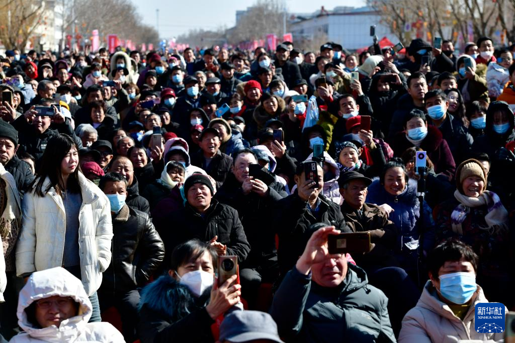 2月9日,观众在观看中国曲协“送欢笑到基层”走进惠民专场演出(无人机照片)。