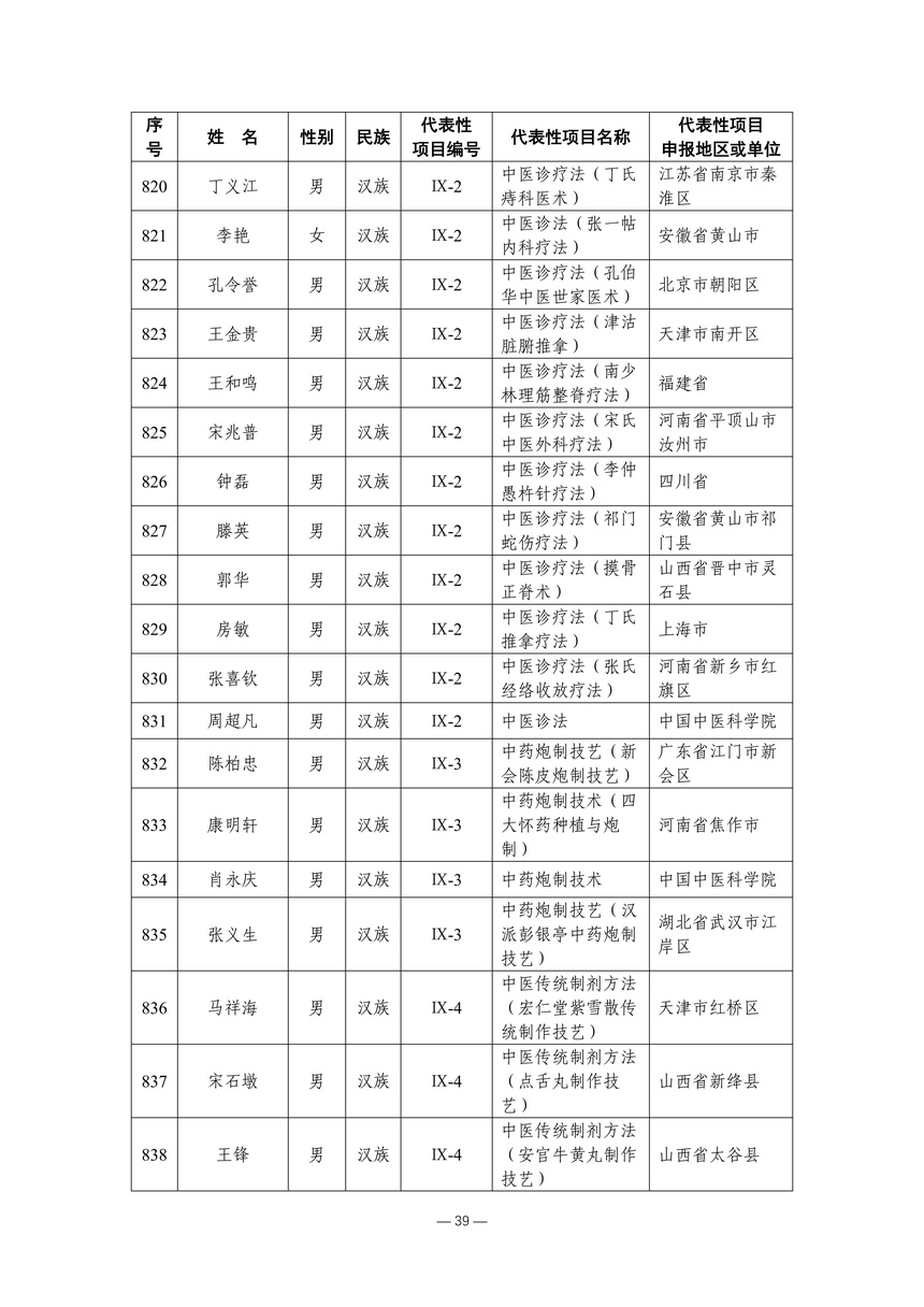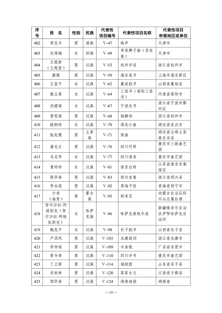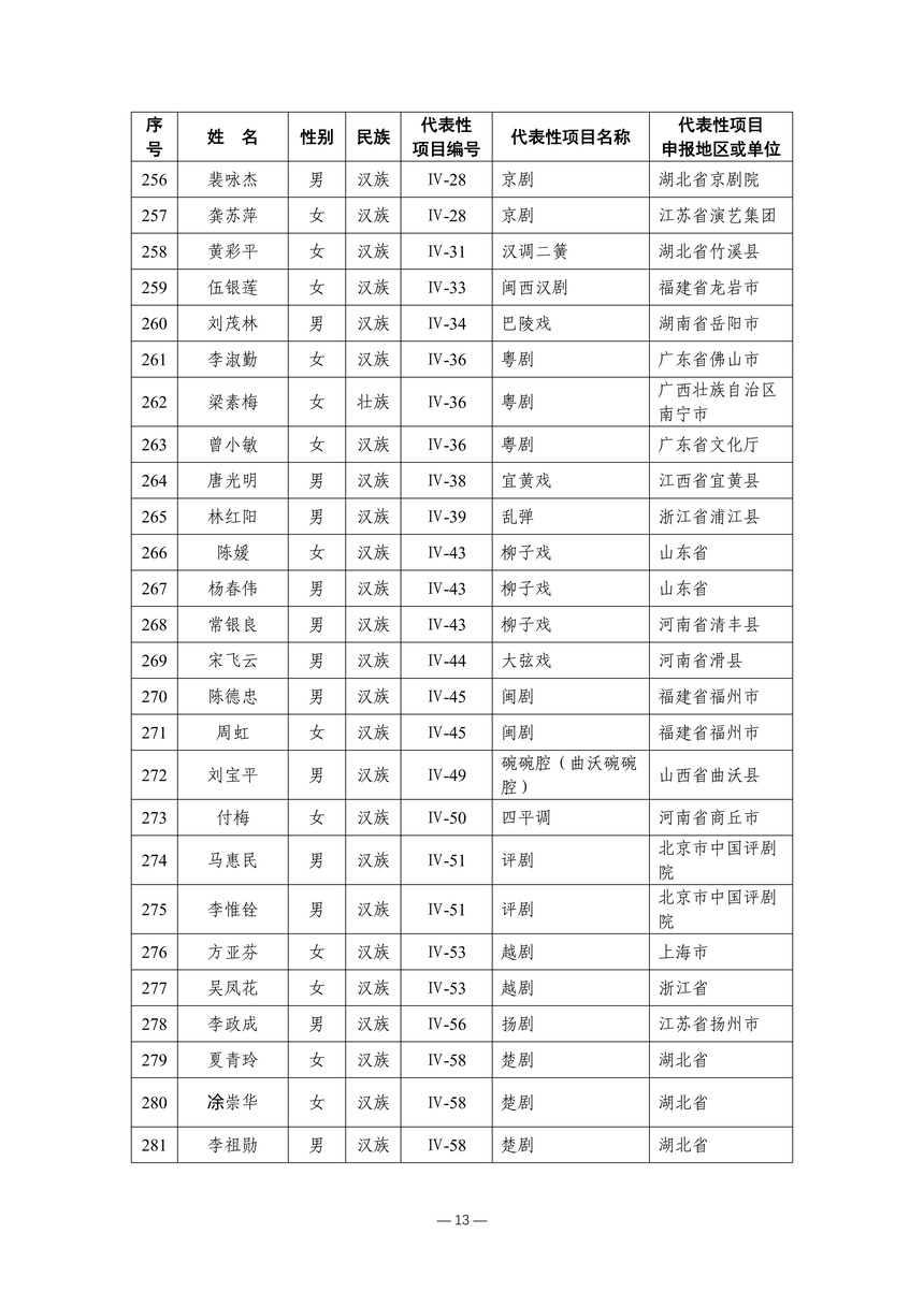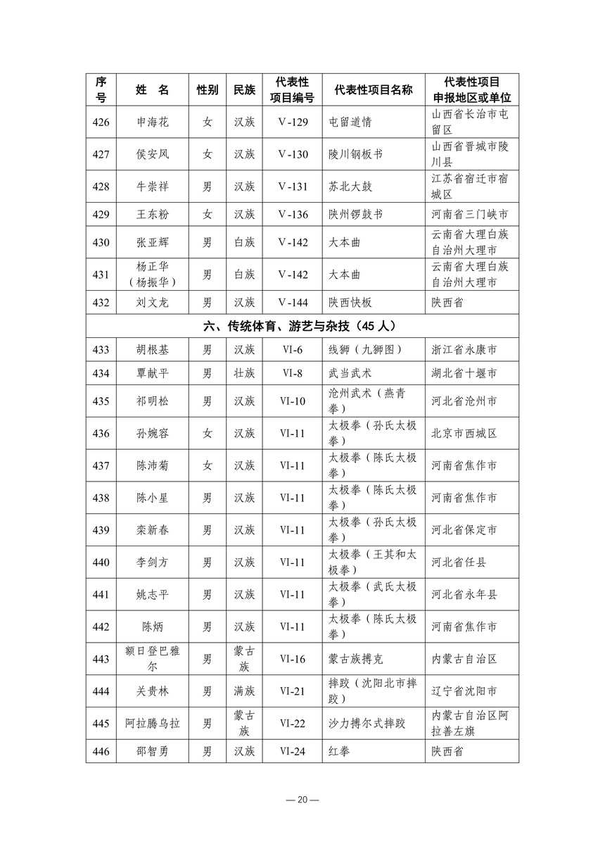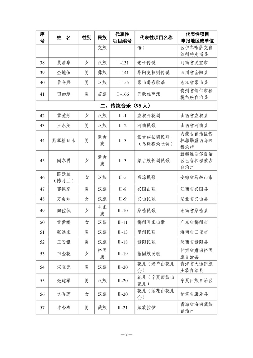 习近平总书记高度重视非物质文化遗产保护传承,强调要积极培养传承人,一代一代接下来、传下去。近年来,各地高度重视非物质文化遗产代表性传承人队伍建设,涌现出一大批德艺双馨、技艺精湛,在非物质文化遗产保护传承中发挥重要作用的典型代表。根据《中华人民共和国非物质文化遗产法》及《国家级非物质文化遗产代表性传承人认定与管理办法》有关规定,为加强非物质文化遗产传承人队伍建设,进一步提升非物质文化遗产系统性保护能力水平,保护和传承好非物质文化遗产,文化和旅游部组织开展第六批国家级非物质文化遗产代表性传承人认定工作。经推荐申报、材料复核、专家初评、社会公示、评审委员会审议等程序,确定了第六批国家级非物质文化遗产代表性传承人名单(942人),现予以公布。