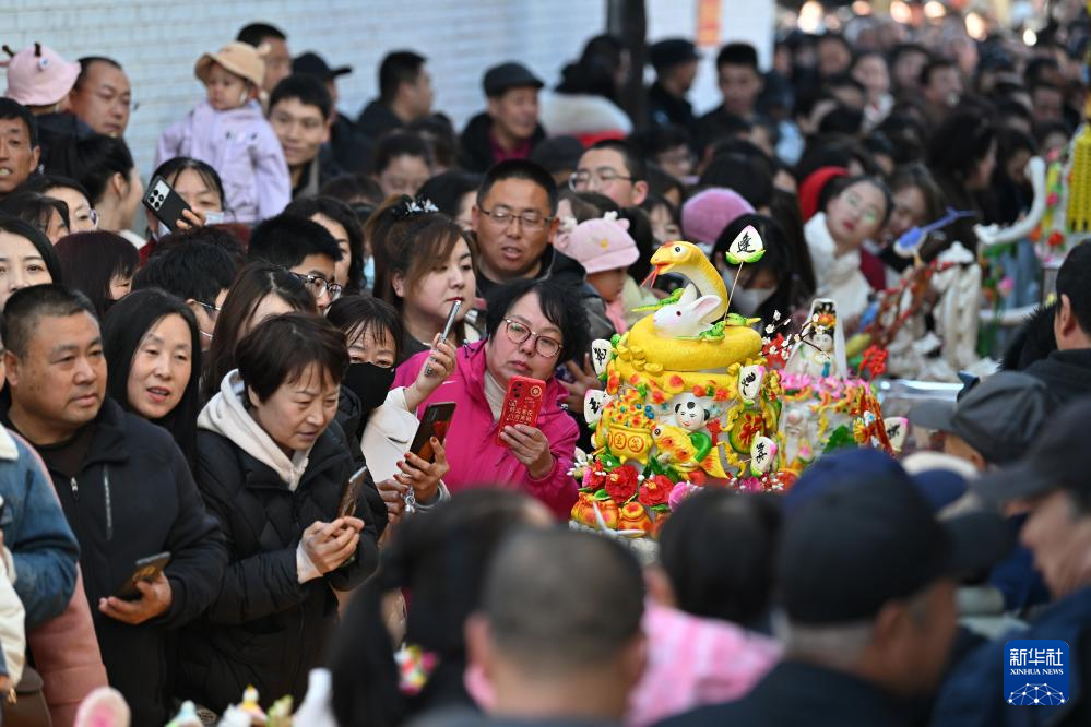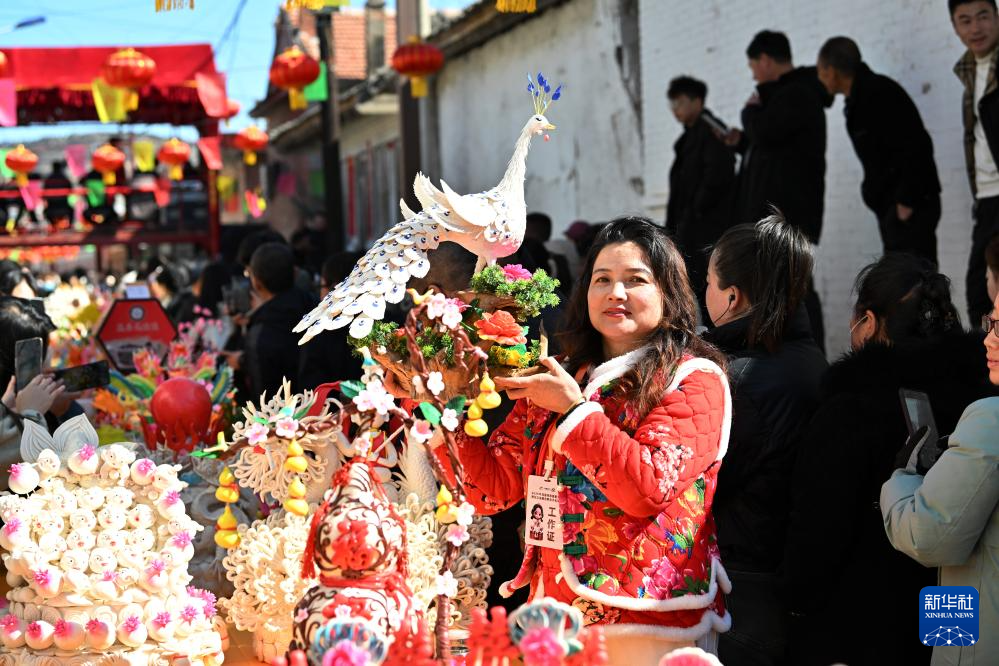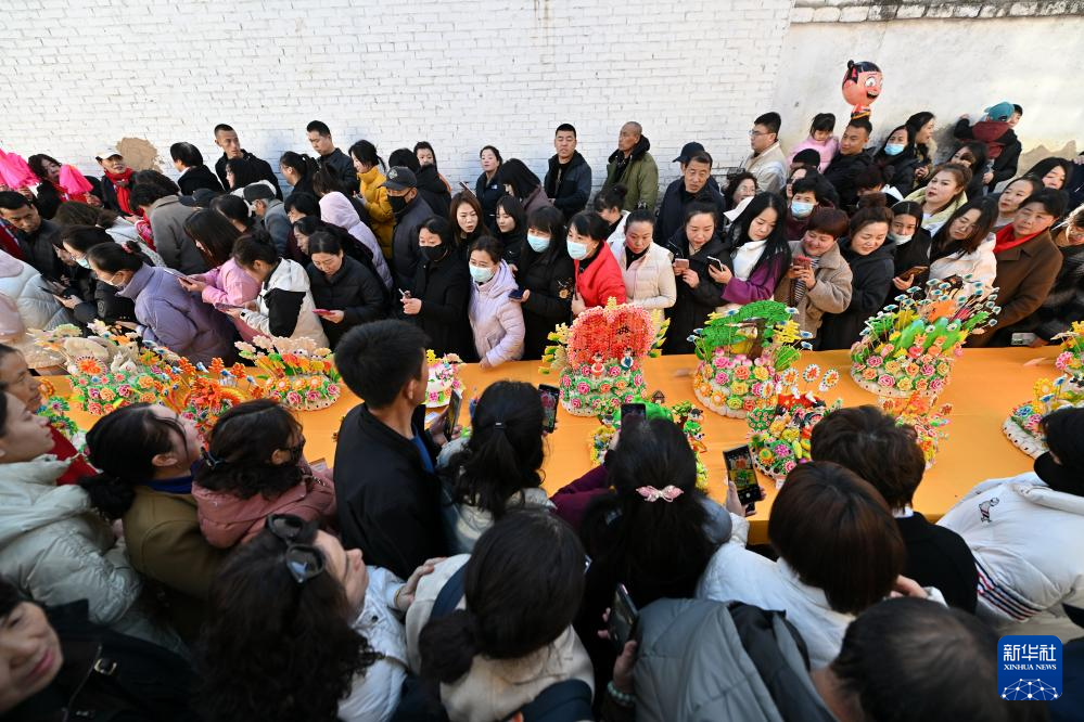 当日是农历二月十九,每年农历这一天,吕梁山区的山西省岚县岚城镇的乡亲们都会将精心制作的面塑摆上街头进行展示,形成一条百米长的“面塑长河”。这些面塑作品造型各异、精巧绝伦,寄托了人们对美好生活的期盼。