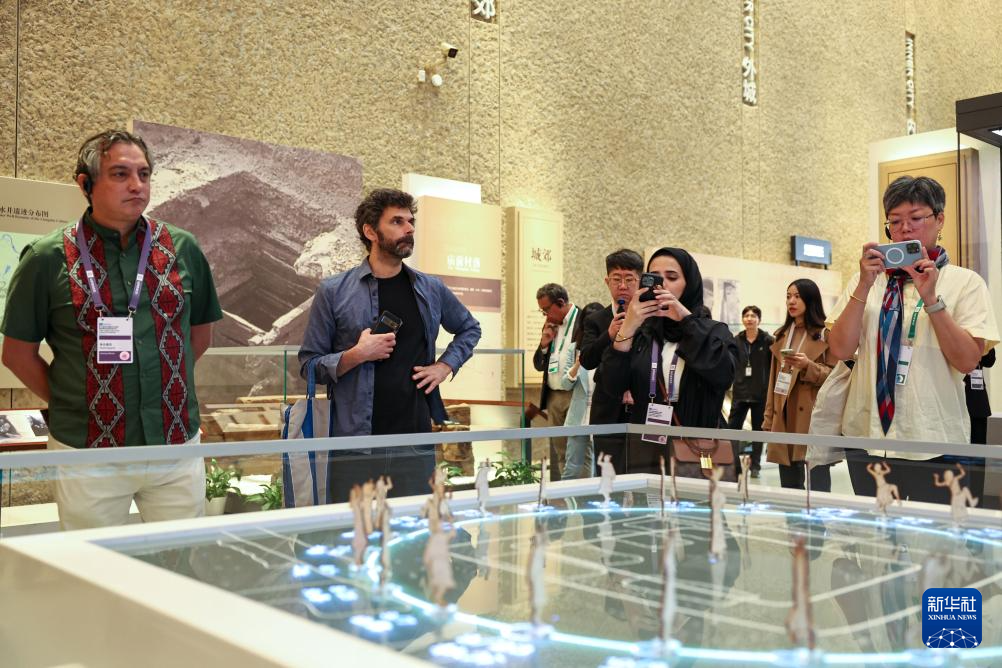 4月23日,参加第三届联合国教科文组织国际博物馆高级别论坛的嘉宾在参观良渚古城遗址公园。