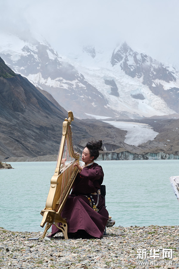 中央民族乐团著名箜篌演奏家吴琳在祥格拉冰川演奏