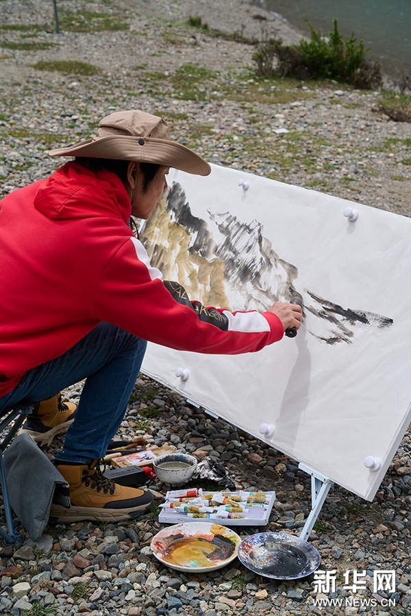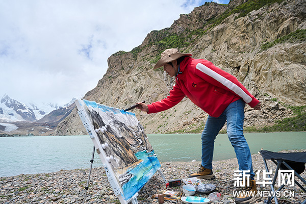 6月19日,“文化西藏 天上画卷”高原高峰艺术家西藏行写生活动走进三色湖、祥格拉冰川。唐天源、何加林、岳黔山、丁杰、梁明、顾平、陈琪等知名艺术家现场写生,用画笔描绘西藏之美。