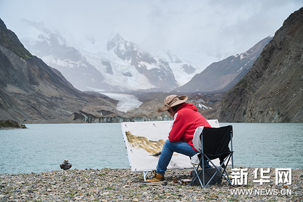 中国国际进口博览会艺委会主任、上海市美术家协会顾问陈琪在祥格拉冰川现场写生