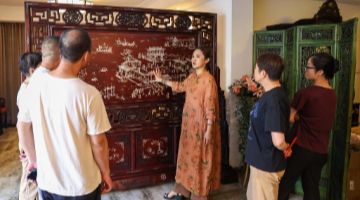 10月16日,六必居的工作人员在活动现场介绍酱菜制作技艺和特色。