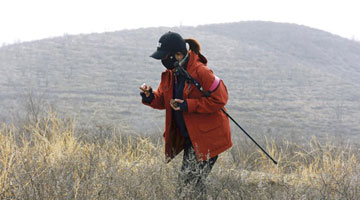 11月18日,敦煌研究院文物保护技术服务中心工作人员在观察西墙墙基排水处理效果。