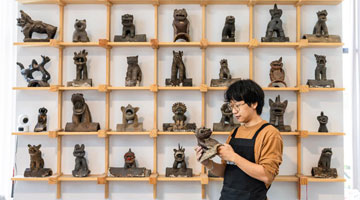 11月23日,兔儿爷制作技艺展台的工作人员在2025非遗品牌推广周上展示兔儿爷。