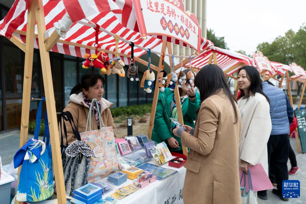 1月17日,人们在非遗集市上选购文创产品。