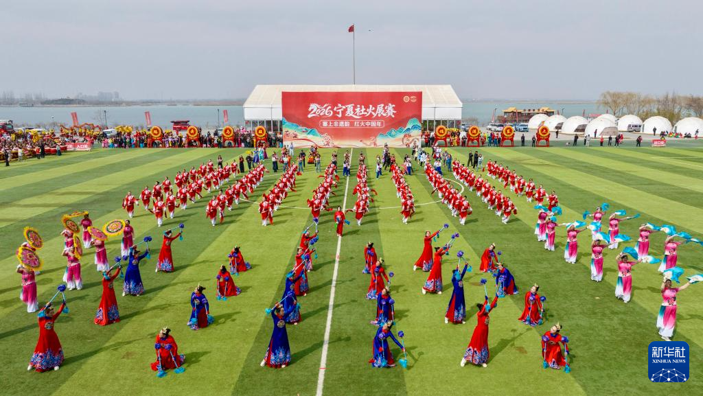 3月1日,2026年“塞上非遗韵·红火中国年”宁夏社火展赛决赛在宁夏银川市览山公园启幕,来自全区的20支社火队伍同台竞技,为市民献上一场精彩的社火大展演。