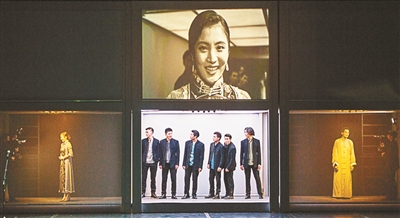 《直播开国大典》技术的气质比较强,我们就会有些与技术相关的装置,有一些装置台下观众看不清,就会有即时拍摄。其实通过影像可能也并不是看得很清楚,我们这次还是采用舞台化的影像风格,舞台剧艺术是假定性的,有意思就在于不像电影电视那么真,我们努力与影视影像区分,不是实在地去拍摄。