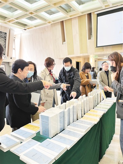 中场休息,与会专家学者围着丛书第一辑热烈交谈。