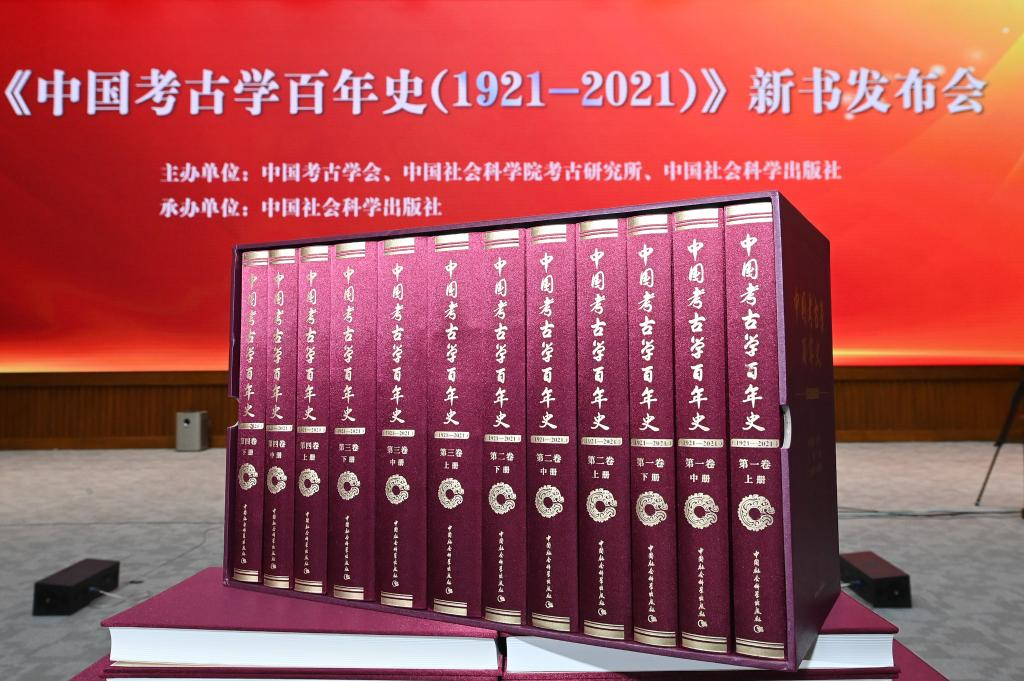 这是在新书发布会上展示的《中国考古学百年史(1921-2021)》全书(12月29日摄)。
