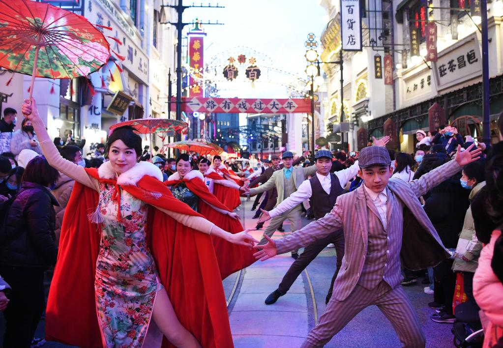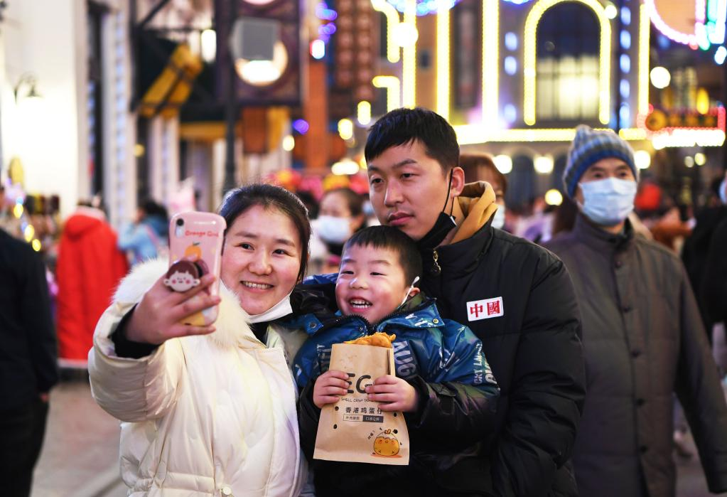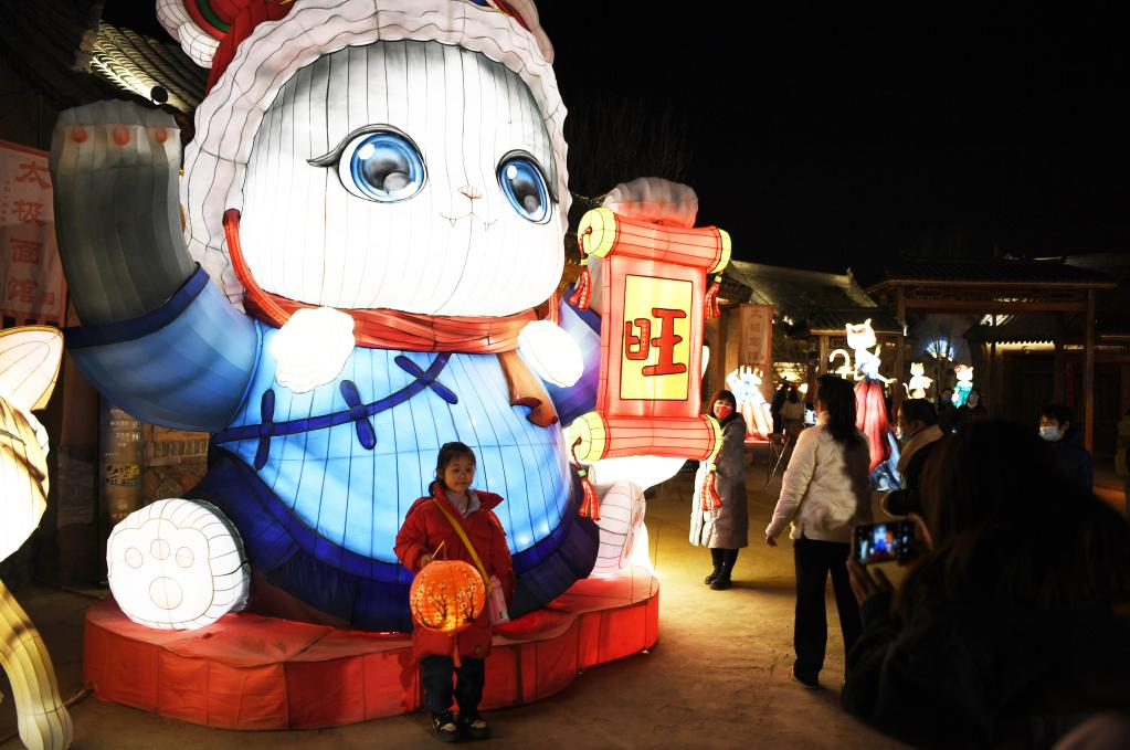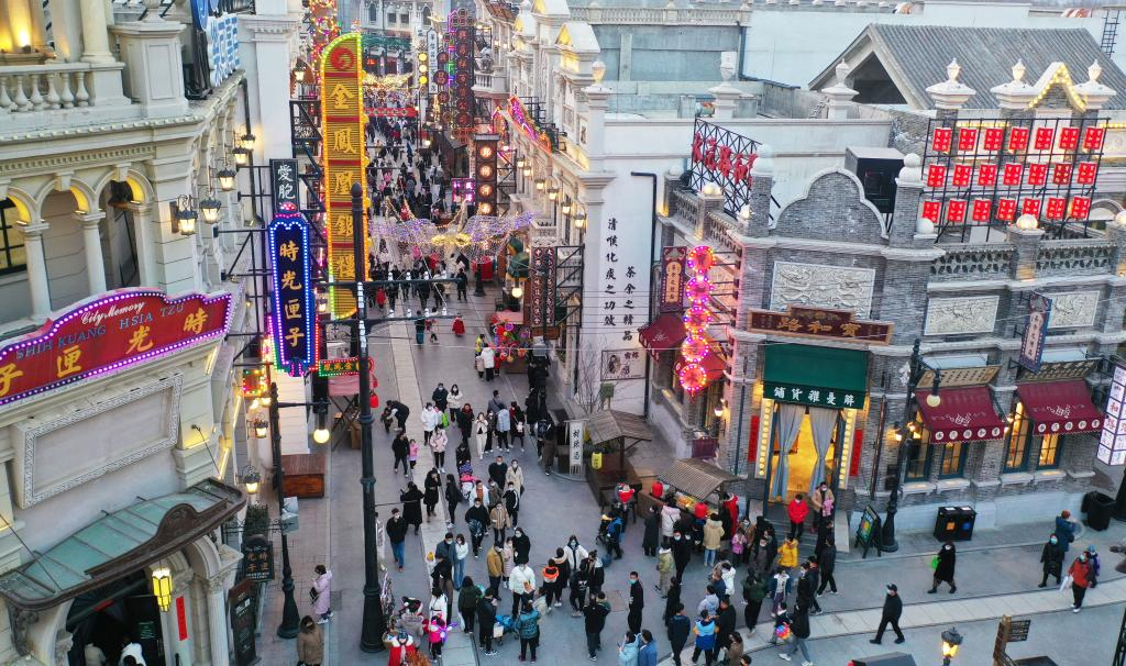 春节长假期间,不少游客来到河南郑州建业·华谊兄弟电影小镇,赏花灯、看演出,欢度佳节。