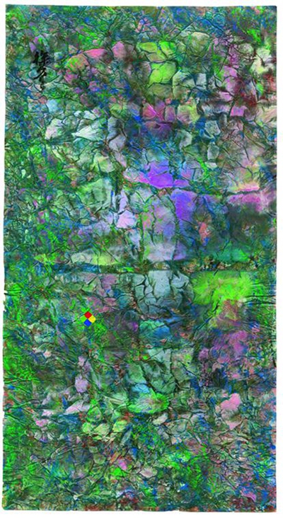 徐冬冬认为,二十四节气历史悠久,可追至上古时代,蕴含着对天地万物生命起源的哲学认知。中国抽象绘画,画的是生命本质的生生灭灭。画的是“空”,而不是“色”。他告诉记者,在创作这组画时,他会细致捕捉依次出现的时令、气候、物候的变化,通过八识中的“眼、耳、鼻、舌、身、意”来感受大自然的气息,然后用抽象的笔触呈现在画纸上。“我就像是一台感应器,每一个汗毛孔都在感受着天地的气息。”徐冬冬说。作画的宣纸经过特殊处理,也有了肌理和纹路,色彩浓烈的画作仿佛有了生命,似乎在呼吸伸展。