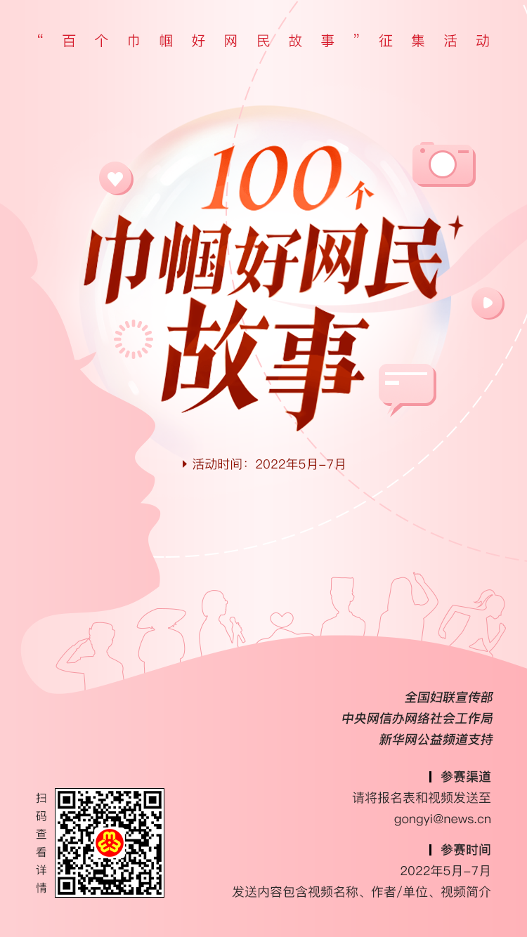 案例字数不超过2000字,并报送相关图片和视频,请于7月31日前报至全国妇联宣传部网络新媒体处邮箱:xinmeitichu@women.org.cn