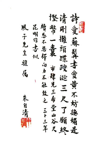 朱自清诗作手迹