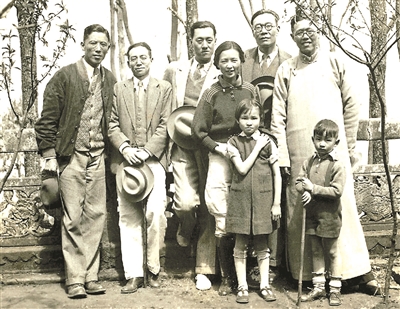 读书生活之余,在昆明西山的合影。左起:周培源、梁思成、陈岱孙、林徽因、金岳霖、吴有训,孩子为梁再冰、梁从诫