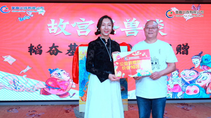 分享会上,童趣出版有限公司向韬奋基金会捐赠了《故宫怪兽谈》及世界名著等价值10万码洋的作品。插画师谭诺专门为韬奋基金会创作了公益阅读画作,永久免费授权韬奋基金会作为公益宣传使用。