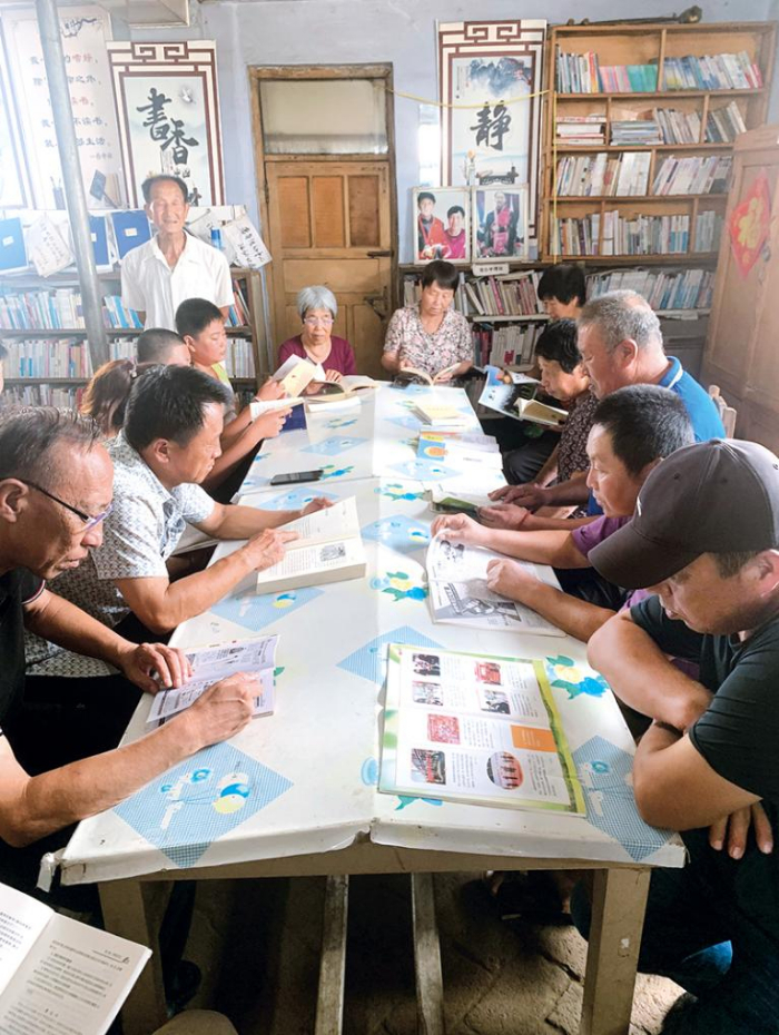 村民胡德全在读书会上说:“以前遇到事爱钻牛角尖、认死理,总觉得自己遇到的坎儿多。在老刘这儿看了几本名人传记明白了,谁还不遇到点难事?面对困难、战胜困难,比发牢骚有用。”