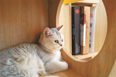 昨天上午,北京青年报记者来到位于朝阳区和平街10区7号楼的新华书店宠物主题书店——门前,摆满了开业庆典花束及各色气球;店内,六七只猫咪悠闲地漫步于各个角落。